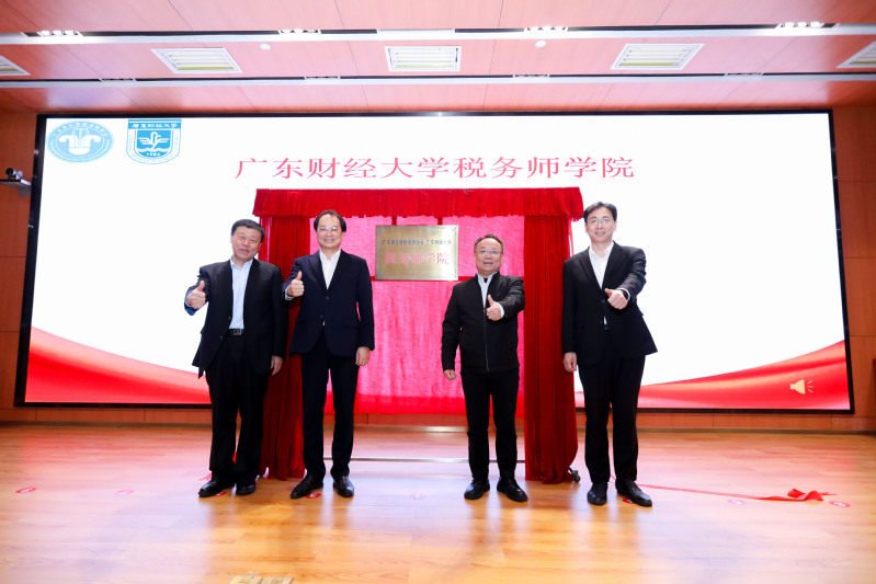 在与会嘉宾的共同见证下,双方领导为广东财经大学税务师学院揭牌。揭牌仪式现场气氛热烈,掌声雷动。揭牌仪式结束后,全体嘉宾合影留念。