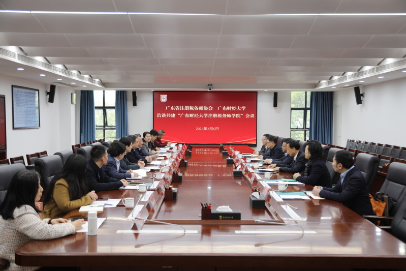 3月6日,我校与广东省注册税务师协会共建“广东财经大学注册税务师学院”洽谈会在广州校区同德楼第一会议室举行。广东省注册税务师协会会长王义平,副会长赵平、高峰、伍建兰,秘书长卢伟雄,培训部副主任钟海量;我校党委书记郑贤操、校长于海峰、副校长张凯,社会合作处处长吕瑛,法制办副主任赵鹏,财政税务学院院长李林木、院党委书记刘文基以及学院其他领导班子成员和教师代表出席会议。会议由于海峰主持。